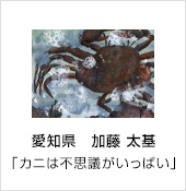 本当に力作揃いで、選ばせて頂くのが苦しいと思いつつ楽しませていただきました。印象に残っているのは、大胆に紙いっぱいにザリガニが描かれた作品。ザリガニを釣った嬉しさのあまり大きく描いたのかな、と想像することができ、とても可愛らしく楽しい絵でした。写真や映像で見たものよりも、直に自然と遊び、体験の中で得た発見を描いてほしいです。