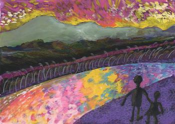 ぼくのまちには、りっぱな利根川が流れています。夕やけの時間になると本当に美しいすがたがみられます。みんなにもみてもらいたいのでかきました。