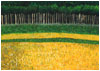 「菜の花畑とカラマツ林」