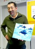 私が選んだのはイルカの絵ですが、非常に透明感があり、面を上手に大胆に使っています。このような絵を描くのは大人にとっても非常に勇気のいることです。その勇気をもらいたいと思いました。非常に素晴らしい絵です。