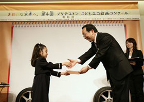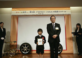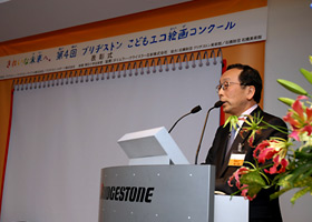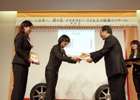 ブリヂストン荒川社長から審査員特別賞受賞者と団体賞受賞団体の方々に目録と表彰状が贈呈され、受賞の感想を述べていただきました。