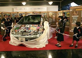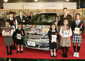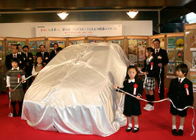 今回の受賞作品101点がデザインされた4代目エコカーが披露され、最後に受賞者の方々と記念撮影を行いました。