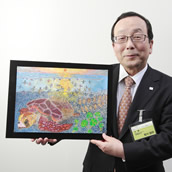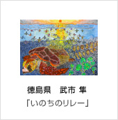 新しい命が生まれてきて、ウミガメの子たちも一生懸命海に向かっていった、いろんな情景が頭や心の中に残っていて、それを全部はきだしたということが伝わってきて、この絵を選びました。