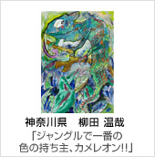 私たち人間もまた動物もみんな自然の中で生きています。自然と調和して仲良く生きていかなければなりません。この絵で描かれているカメレオンという動物は周りの自然環境に順応して、自分自身の色を変えていきます。この作者はカメレオンを選ぶことで、そういう自然と動物との関係を表していますが、もう一つは使った色彩も非常におもしろいと感じました。