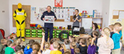 ポーランドのポズナンでは、2008年から従業員のボランティアによる交通安全教育に取り組んでいます。衝突試験用のダミー人形を模したキャラクターと一緒に交通安全に関するインタラクティブな授業を行っています。これまでポズナン市周辺の600以上の学校、約40,000人の学生に550のワークショップを実施してきました。