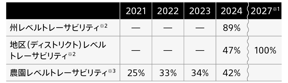 また、インドネシアにある2つの内製事業所のうち、1つでは既に農園レベルで100%トレーサビリティを達成しており、もう1つの農園でも地区 (ディストリクト) レベルでの100%トレーサビリティを確保しています。