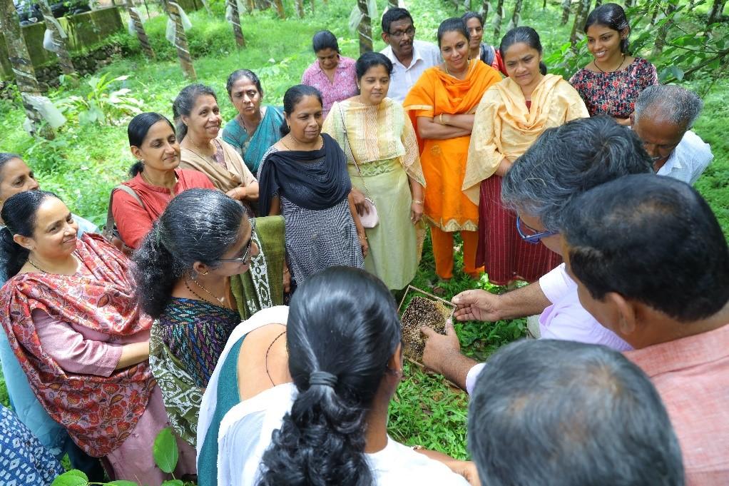ブリヂストン インディア プライベート リミテッド(BSID)によるこの活動は、養蜂に携わる人たちの団体の結成を支援し、女性ゴム農家に技術指導を行う同社の取り組みの実例です。この活動では、合計で35の女性ゴム農家(イドゥッキ県20人、コッタヤム県15人)が研修を受けました。養蜂に携わる人たちのグループの結成やミツバチの群れの作り方、そしてミツバチの巣箱、道具、保護服といった必須道具の入手方法などに関し、総合的なサポートを提供しています。養蜂は、持続可能で低コストでありながらも利益が大きいため、ケララ州の農家には数多くの利点があります。