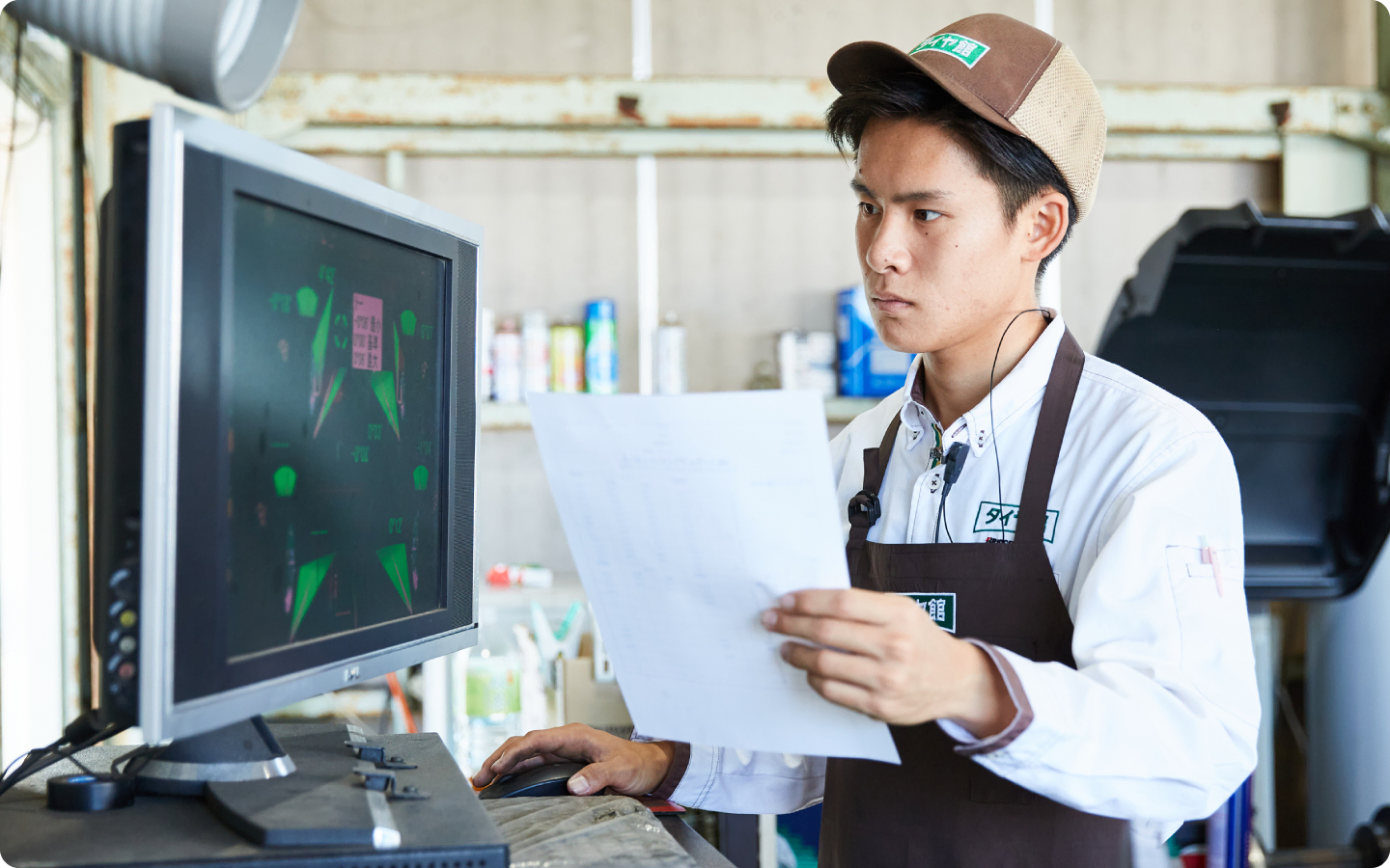 車の整備から接客まで、当社で経験できる様々な業務のなかにきっと自分の得意なことが見つかります。実際に仕事をするまで、自分が何に向いていて何ができるのかわかりません。当社には一人ひとりの長所を伸ばして、弱点を改善しながら成長できる環境が整っています。私も先輩やお客様に毎日刺激を受けながら多くを学んでいるところです。ぜひ私たちのチームに参加してください。共に成長していきましょう。