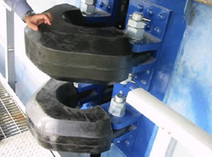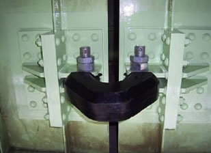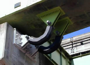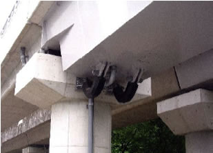橋梁工事関連品|ブロック型ゴム被覆チェーン式落橋防止装置|ツナイダル