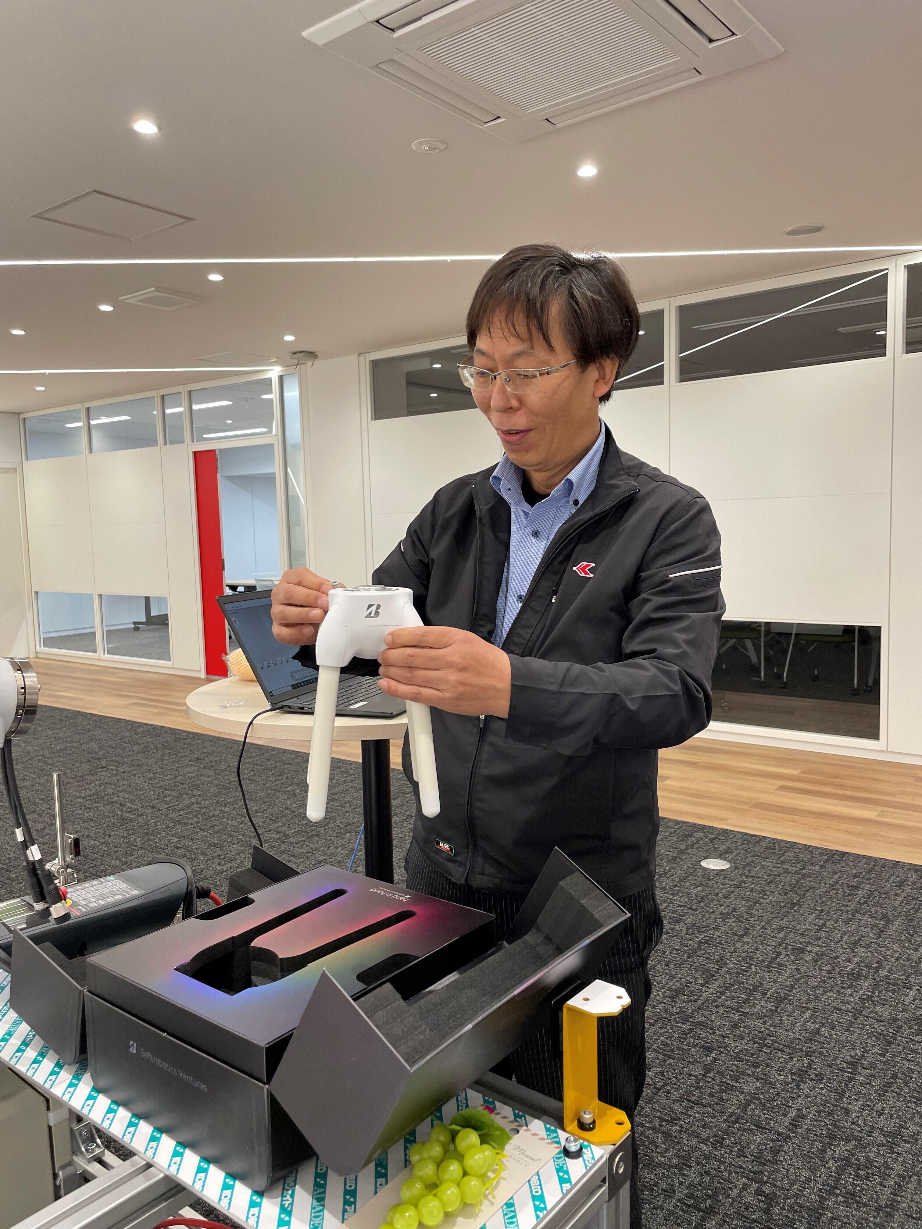 ロボットアームにハンドを取り付けた後、ブリヂストンより商品特性やそれを支える基盤技術についての説明を受けた。展示のその先として、実際に来場いただいたお客様に商品としての魅力を感じ取っていただくために、お客様及びブリヂストンとの双方向の関係性が重要と考えた。