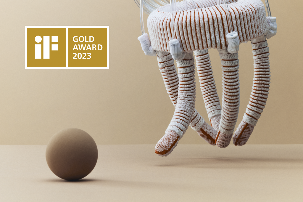 今回受賞したソフトロボットハンドのコンセプトモデル「Dialogue」は、たなごころ(掌)をイメージし、ロボットハンドが環境や状況と「対話」し、モノを「いい感じ」につかむという機能的価値を体現するとともに、ソフトロボティクスという新しい分野でブリヂストン自らがコンセプトを作り社会実装を進めていくという意思をそのデザインに込めている。