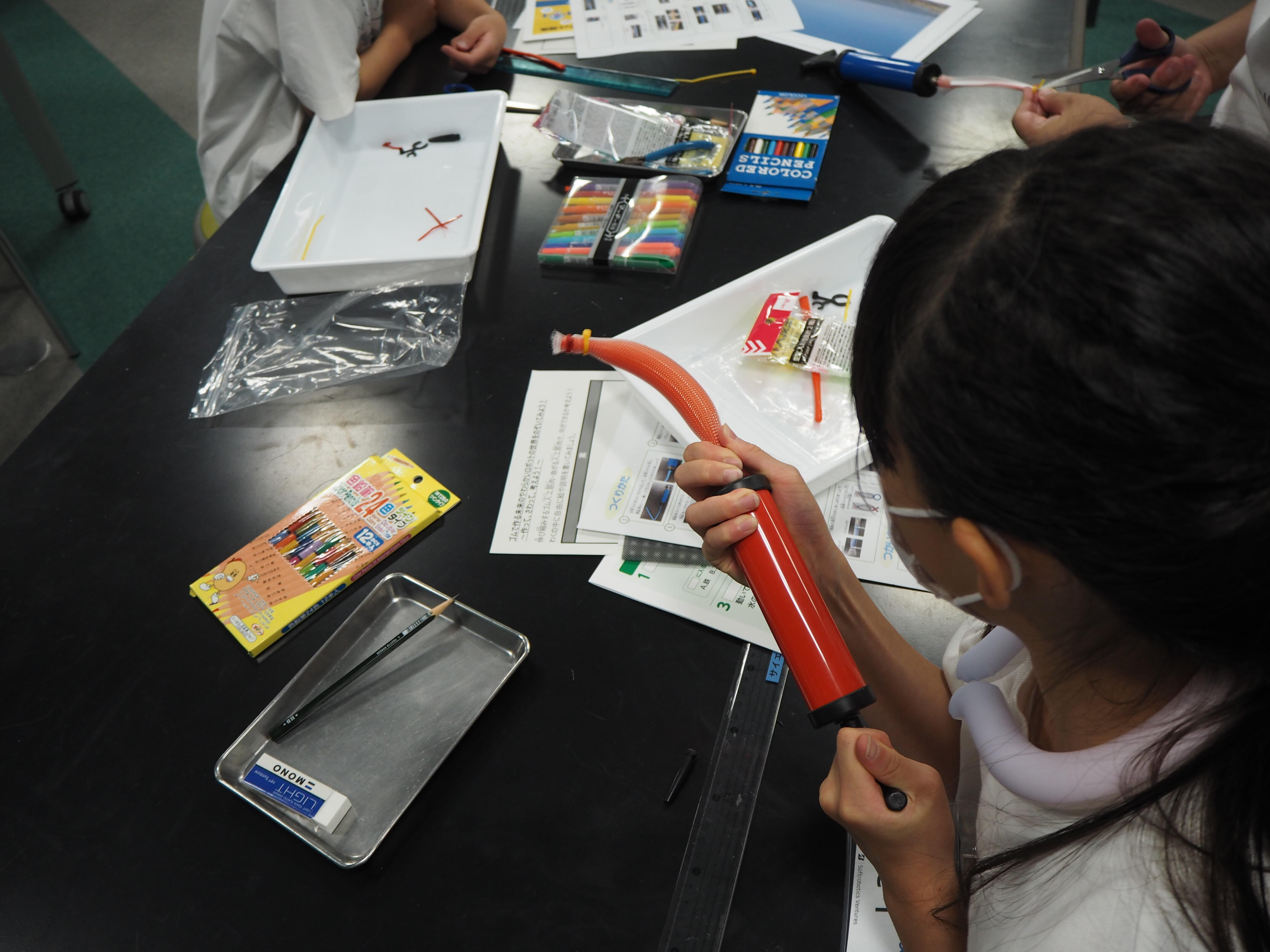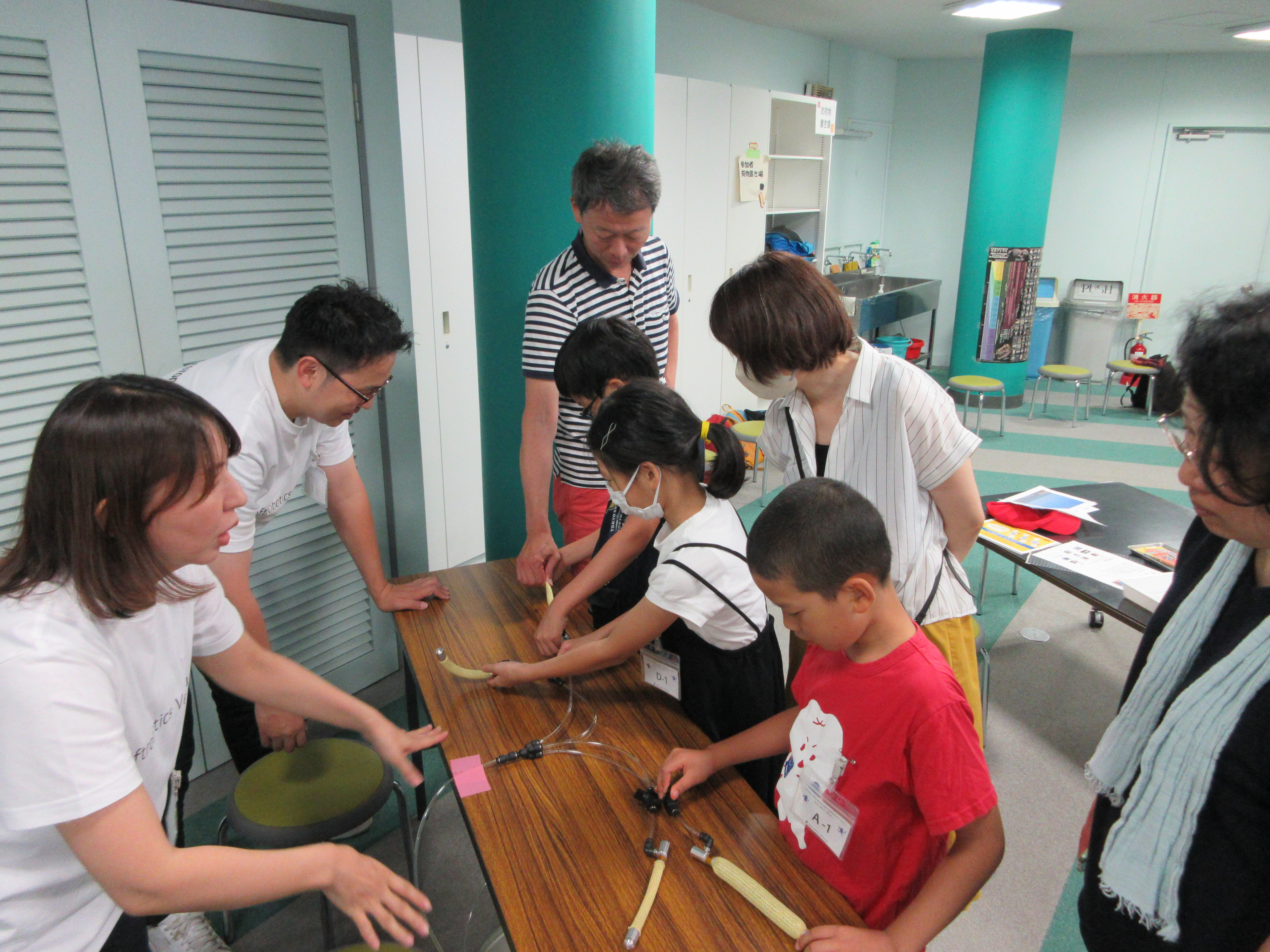 夏休み子ども向けイベント ゴムで作る未来のやわらかいロボットの世界をのぞいてみよう! ~作って、さわって、考えよう!~を東京都千代田区の科学技術館で実施した。