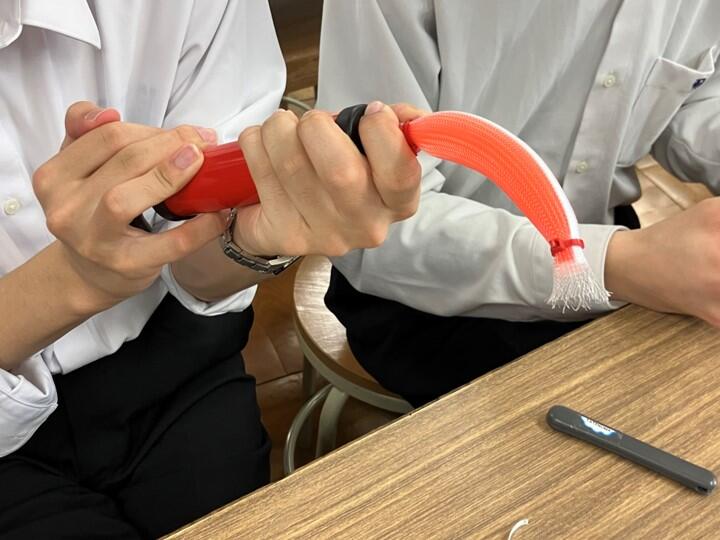 また、身近な材料を使って簡易的な人工筋肉を作成し、仕組みを深く理解してもらった。