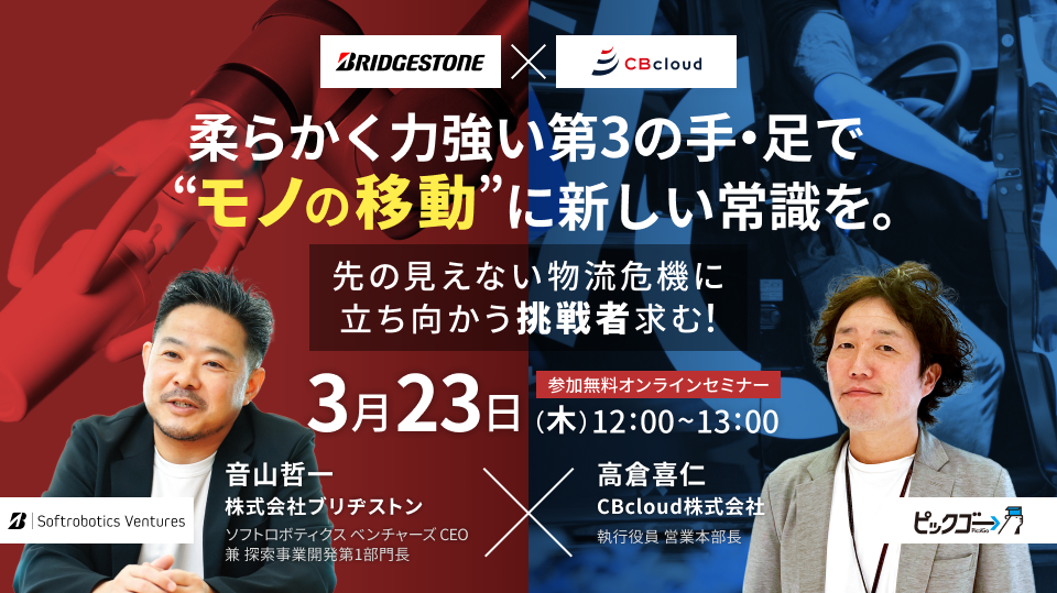 2023年1月に開催し、ご好評いただいたブリヂストン x CBcloud共催ウェビナーの第二弾を、3月23日(木) 12:00-13:00に開催いたします。