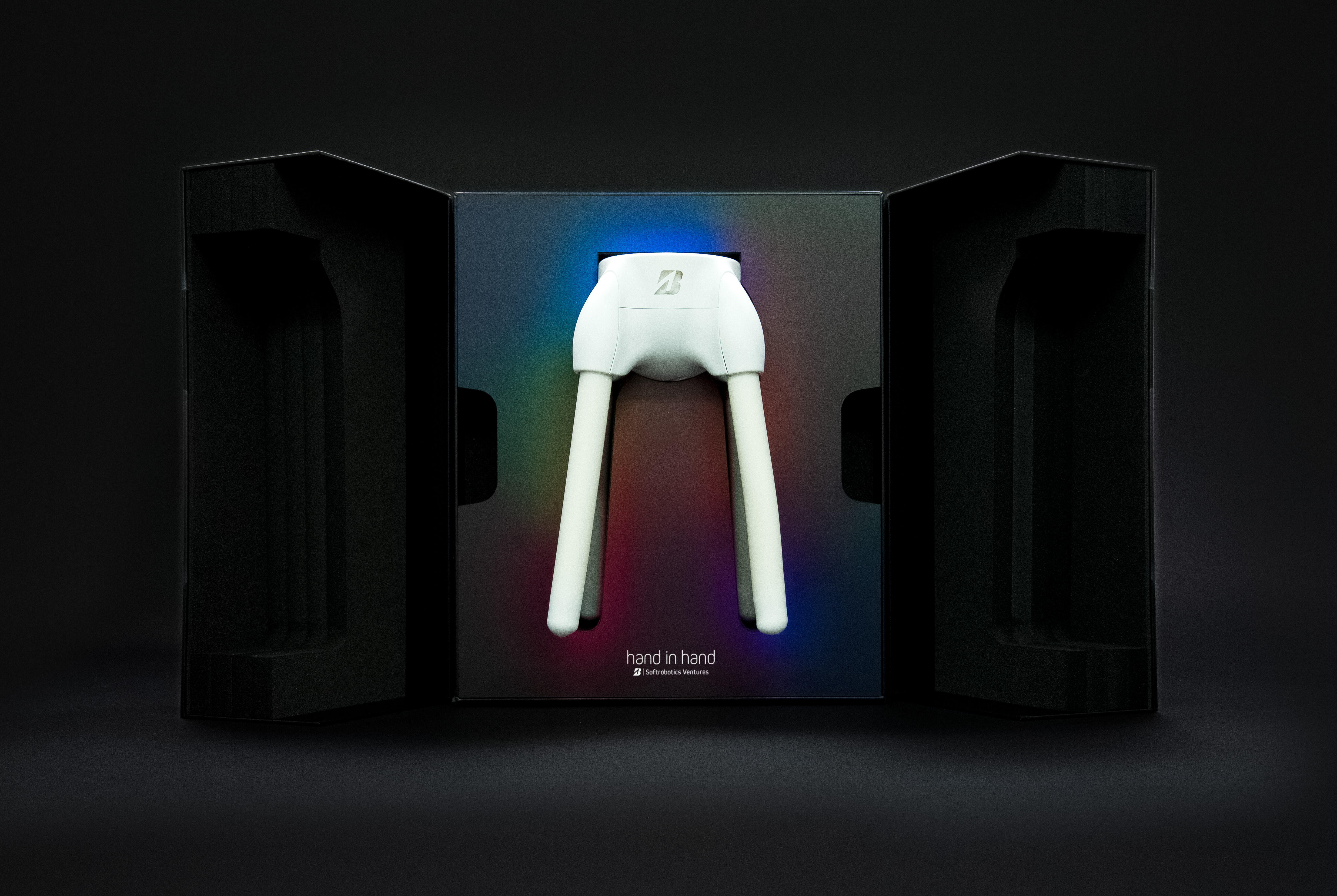 コマーシャルモデルをお届けに上がる時には、「おっ」と思われるような特別な体験も同時にお届けしたい。そんな想いから、この度、商品パッケージを製作しました。kenma(デザイン)と福永紙工(設計・製造)とのコラボレーションを通じて生み出された、ソフトロボティクス ベンチャーズらしさ満載の商品パッケージとなっております。