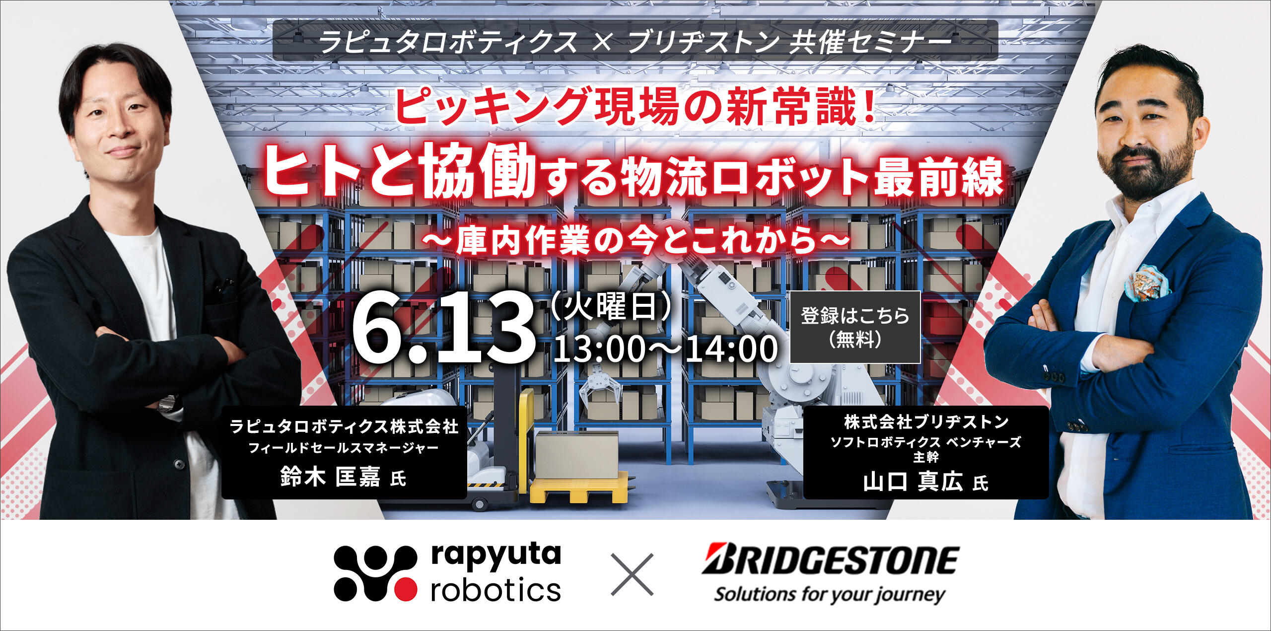本ウェビナーでは、倉庫のピッキング業務で自動化ソリューションを持つラピュタロボティクス株式会社が庫内作業の「今」を、ソフトロボティクス ベンチャーズを立ち上げ"つかめない"の課題に取り組んでいる株式会社ブリヂストンが庫内作業の「これから」を解説させていただきました。