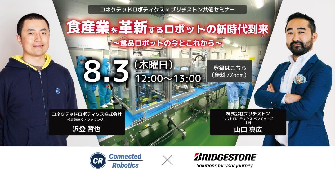 ブリヂストンとコネクテッドロボティクスが初コラボし、8月3日(木)12:00-13:00に無料ウェビナー「食産業を革新するロボットの新時代到来 ~食品ロボットの今とこれから~」を開催いたしました。