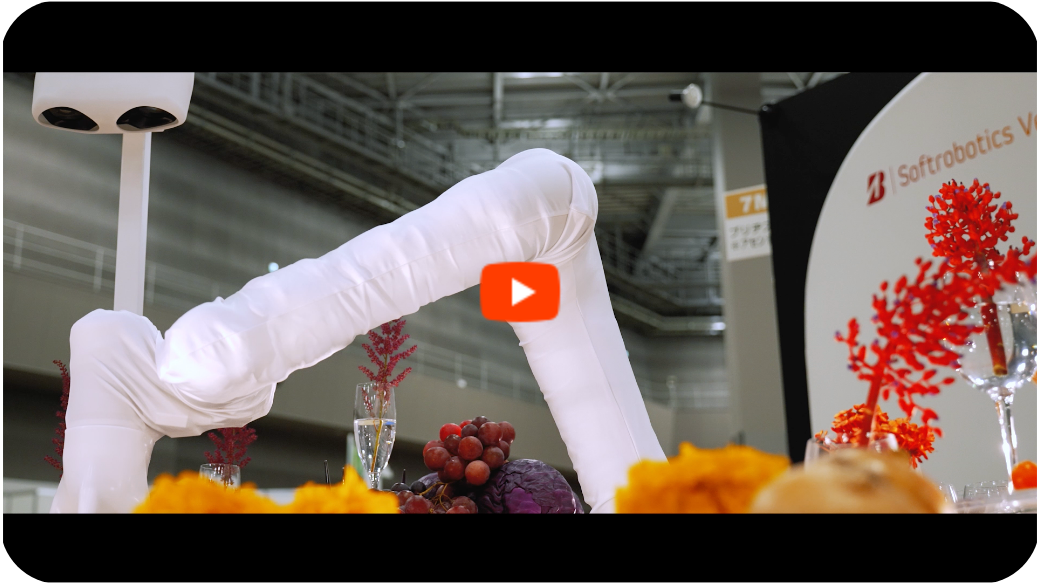 ゴム人工筋肉の柔らかさが、部品や日用品など、