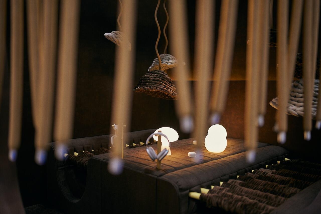 ゴム人工筋肉の柔らかいロボット「umaru」は、人々が身と心を預け、埋まり、優しく包まれることで「安らぎ」の体験を提供するプロダクトです。