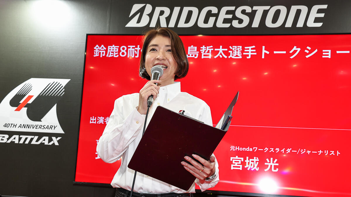 ブリヂストンの顔とも言える元ホンダワークスライダーで現在は二輪ジャーナリストとして多方面で活躍している宮城光さん。わかりやすい説明には定評があります。