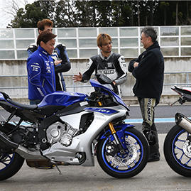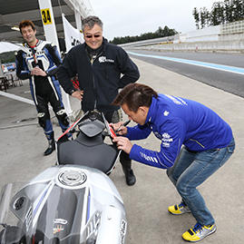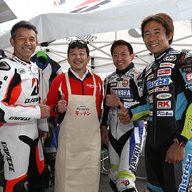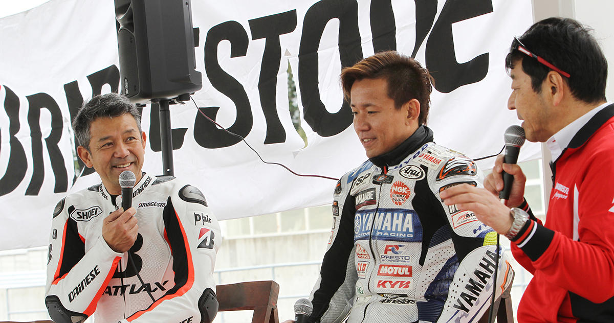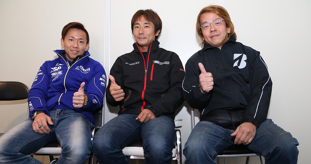豪華な講師陣!左から全日本ロードレースチャンピオン:中須賀克行選手(特別ゲスト)、関口太郎選手、戸田隆選手