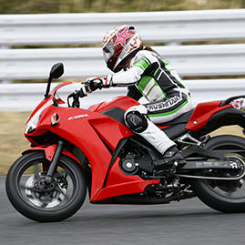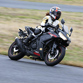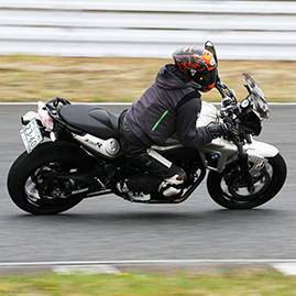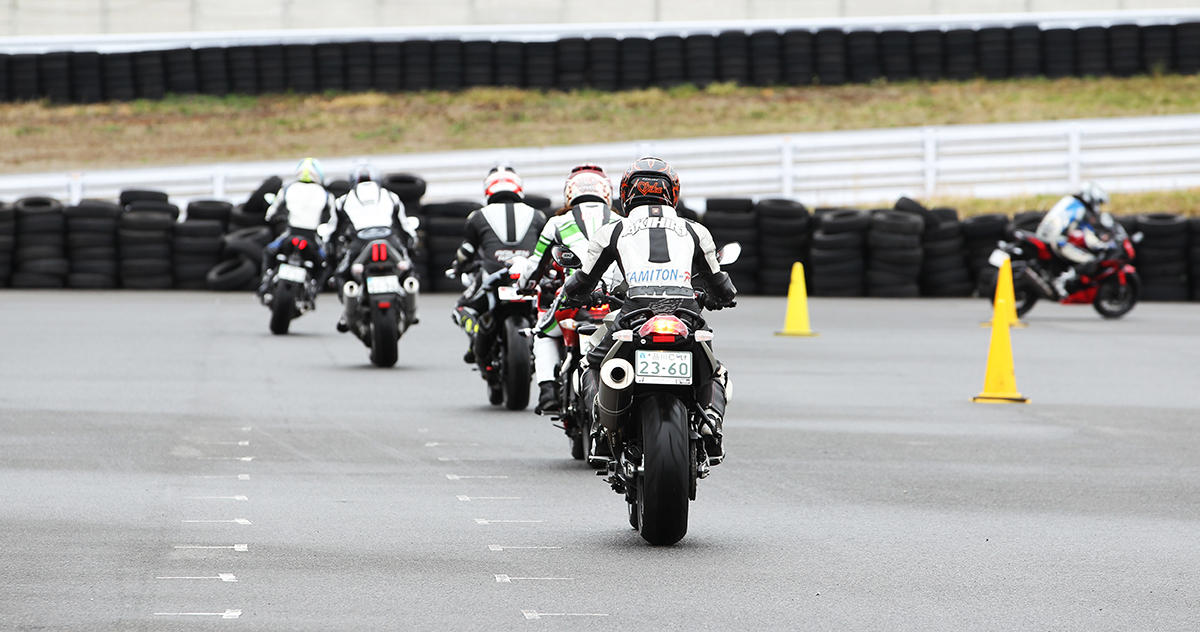 「ビギナークラス」「レディースクラス」の午前中は敷地を利用して走行前チェックからライディングポジション、走行中の目線やブレーキングなどの実地練習