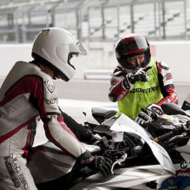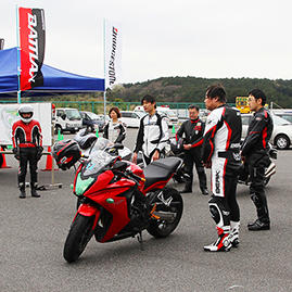 「ゴルフが好きな人はゴルフ場にいきますよね。ボーリングが好きな人はボーリング場にいきますよね。それといっしょ。スポーツライディングが好きな人は、公道で無茶な走りをするのではなくて、サーキットという競技場で安全に限界走行を楽しむべきなんです。いってみれば、サーキット走行はスポーツ派ライダーにとっての必要不可欠な『たしなみ』の一つ。はずしちゃあ、いけません」
