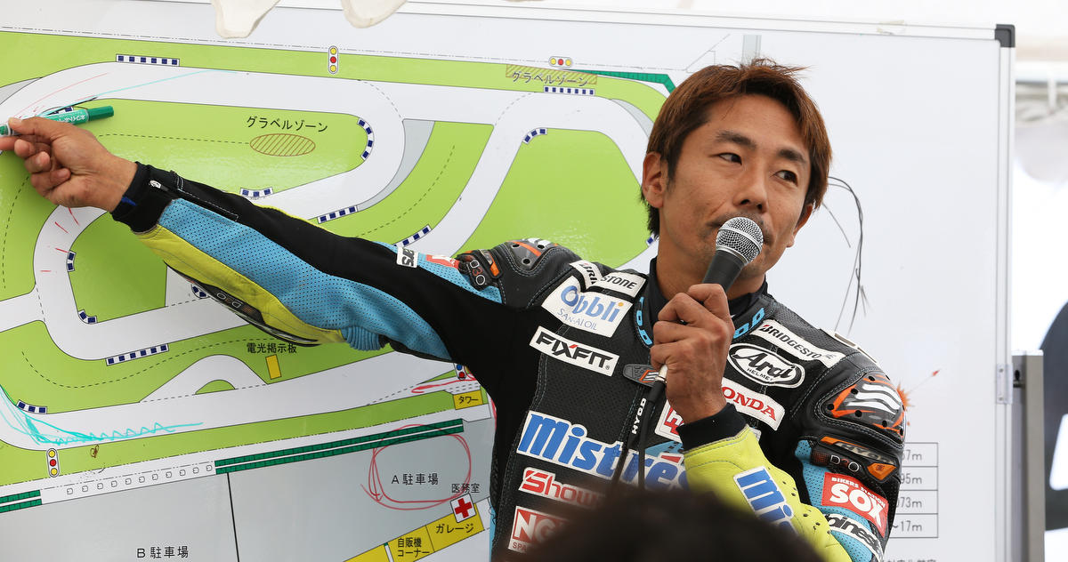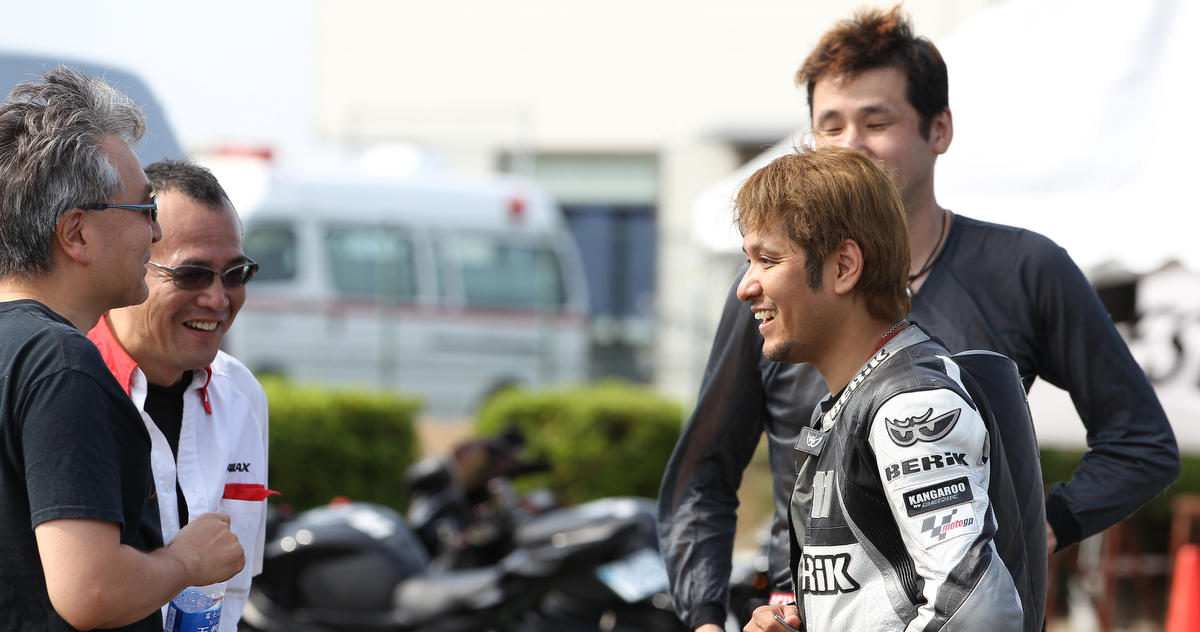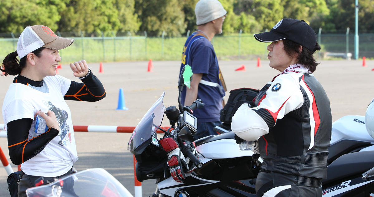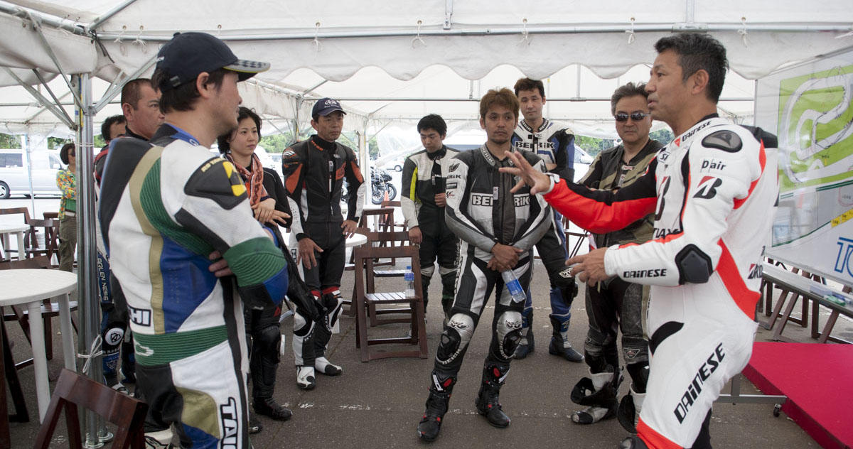 中須賀選手は午後の部でもすべてのクラスのサーキット走行に参加。しかも、こんどは250ccバイクでコースイン。当然ながら、その走りはリッターバイクより非力であることをまったく感じさせないほどに見事なもの。ともに走った参加者からは「改めて、速さって排気量じゃないことがよくわかった」という声が数多く聞かれました。