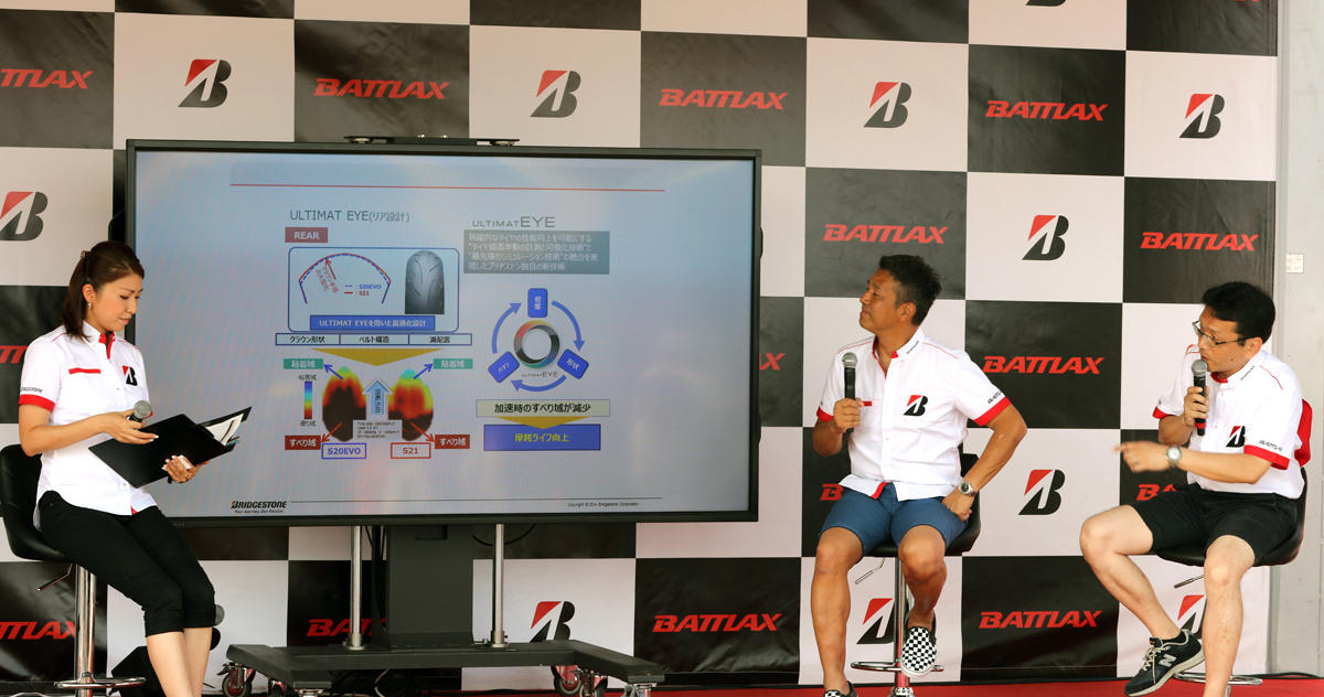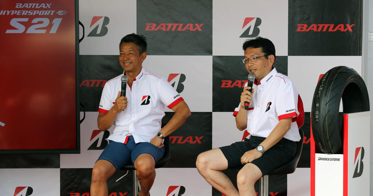 HYPERSPORT S21開発の裏側や、タイヤ開発におけるブリヂストン独自の技術、ULTIMAT EYE(アルティメット・アイ)™についてを、S21開発責任者であるブリヂストンMCタイヤ開発部土橋健介と宮城光さんにより紹介いたしました。