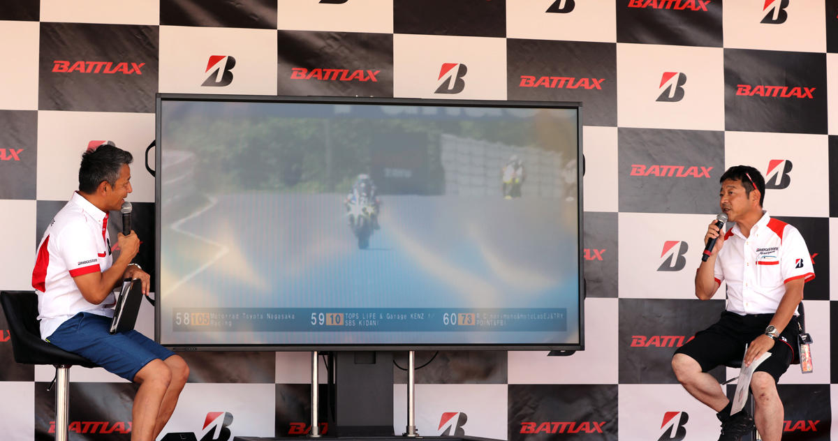 31日(日)には、ブリヂストンモータースポーツの山田宏をゲストに迎える形で、今年鈴鹿8耐11連覇を目指すブリヂストンのこれまでを振り返る「ブリヂストン鈴鹿8耐10連覇の軌跡」と題したトークステージを行いました。