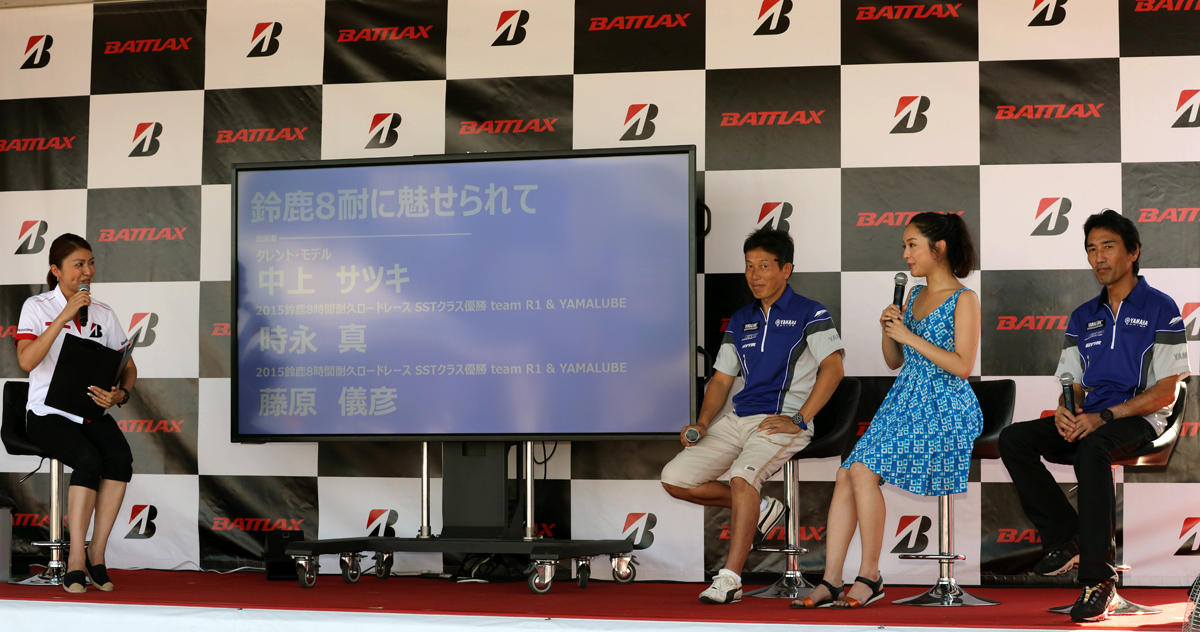 「走りつづけるキミが、すき」 の主役、中上サツキさんと、昨年の鈴鹿8耐スーパーストッククラスで優勝を果たした「team R1 YAMALUBE」の時永真さん、藤原儀彦さんをお迎えしました。