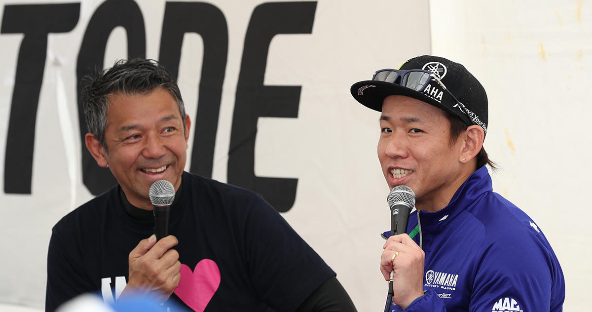 元世界GPライダーの井形ともさん(初心者・レディースクラス担当)、元全米選手権チャンピオンの宮城光さん、国際ライダーの戸田隆選手、全日本ロードレースJ-GP2クラス参戦の関口太郎選手、世界グランプリマシン開発ライダーの青木宣篤選手、全日本ロードレースJSB1000クラス5年連続チャンピオンの中須賀克行選手(スペシャルゲスト)といった面々が、参加者のみなさんに丁寧でわかりやすいレッスンを行いました。