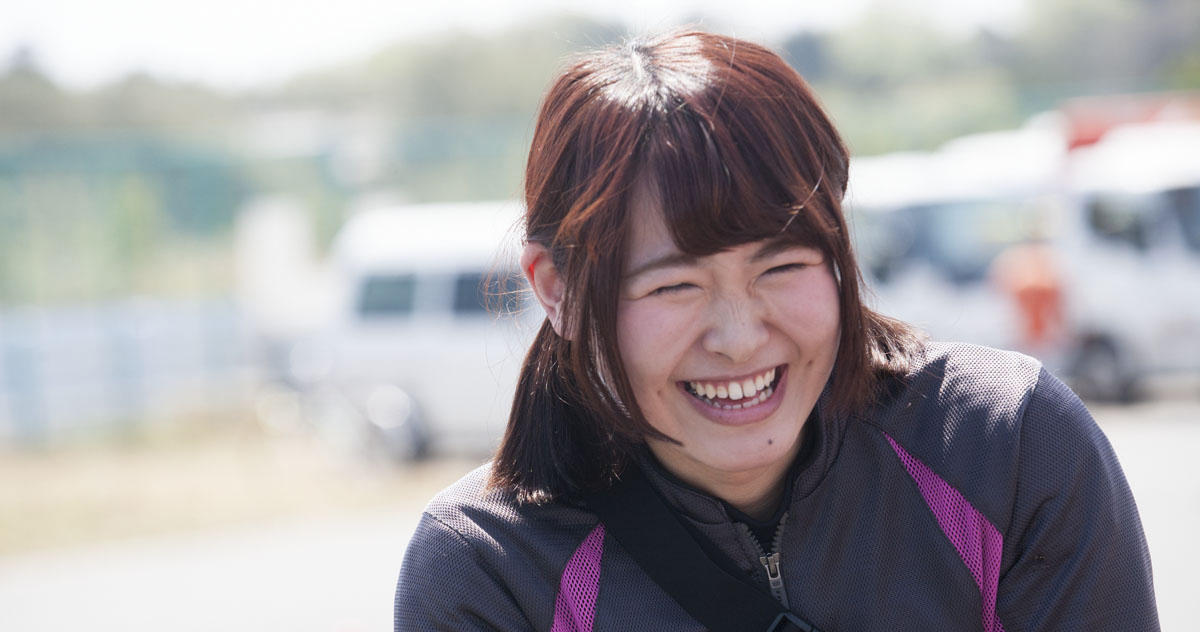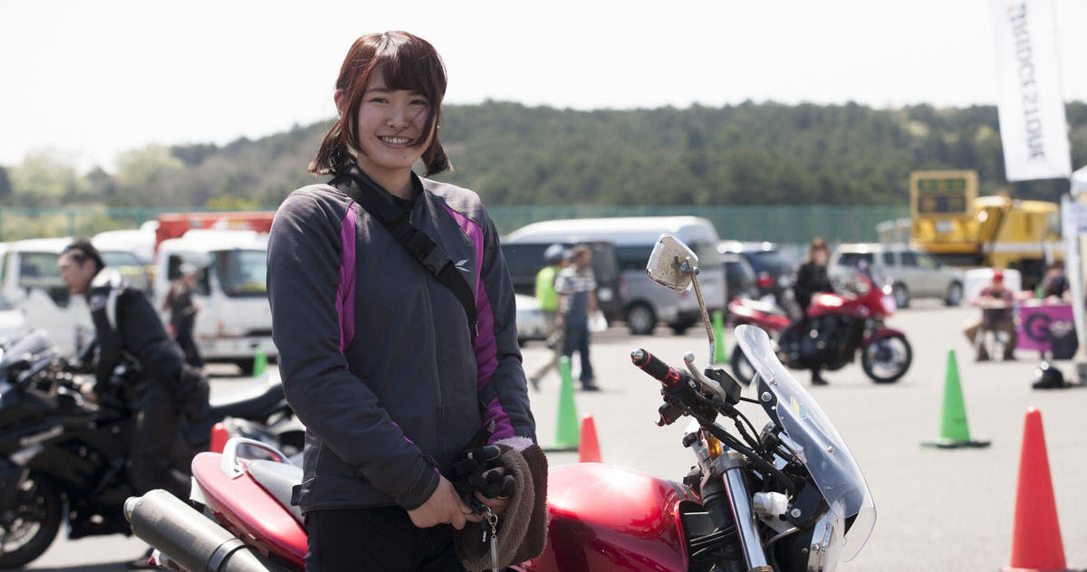 「雑誌の『ガールズバイカー』にこのMEETINGの情報が載っていて、そこに、初心者でも女性でもサーキットで腕が磨けるって書いてあったから。あと、ツナギじゃなくても参加OKってところに惹かれました」