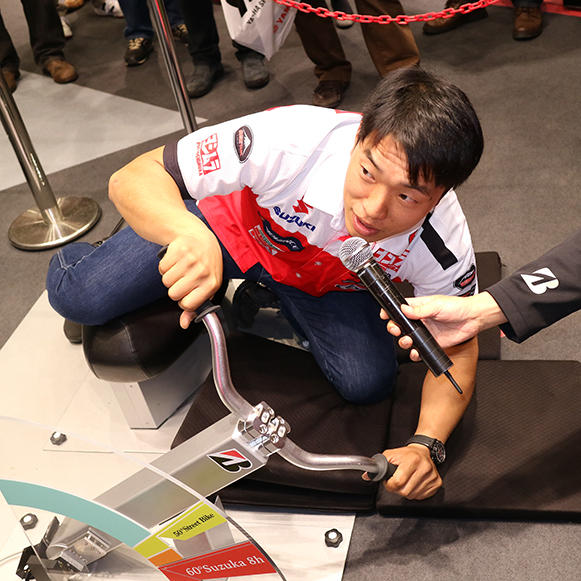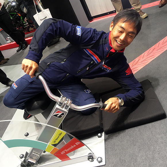 今回は第43回東京モーターサイクルショーブリヂストンブースレポートの番外編です。「接地面視覚化シミュレーター」には大勢のレーシングライダーにも大好評!体験いただいたライダーの皆さまを紹介します!