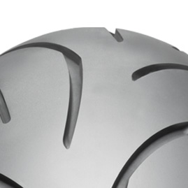 二輪車用のタイヤは、タイヤが傾いても接地面積がほぼ変わらないように設計され、安定したグリップを維持し、旋回できるように、形状が考えられています。