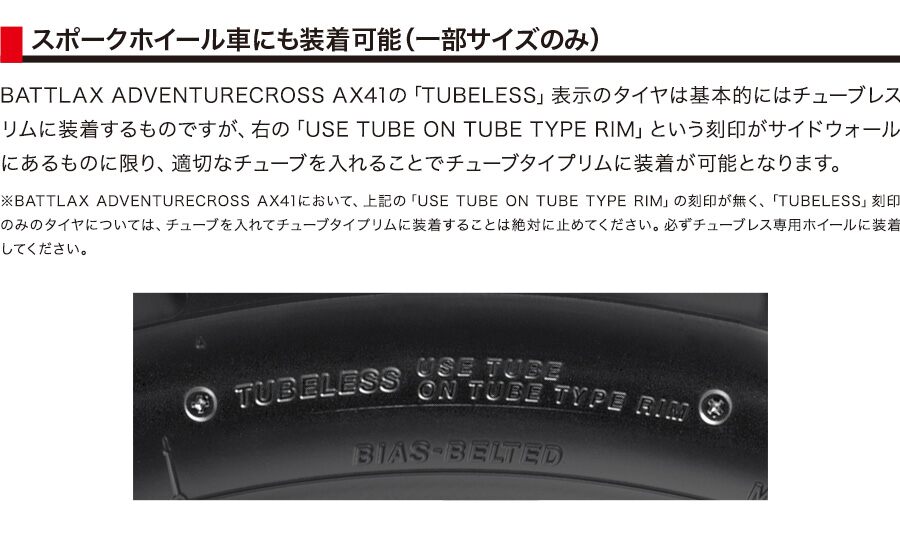 「USE TUBE ON TUBE TYPE RIM」刻印入 |
