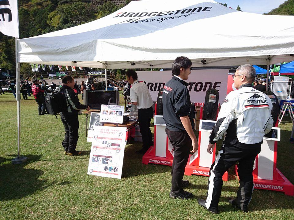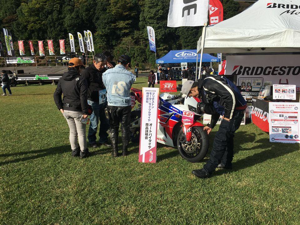 10月30日(日)、京都府伊丹市スプリングスひよしにて、RSタイチ×2りんかんコラボイベント「エンジョイライダースミーティング」が開催されました。会場の日吉ダムは大賑わい!秋晴れの中、沢山のライダーが集まりました。ブリヂストンブースではプロスタッフによる商品説明のほか、秋のツーリングシーズン中の安全点検を啓蒙しました。また、BATTLAX HYPERSPORT S21装着のブリヂストン営業車には問い合わせが殺到!抜群のライフ性能に驚きの声をいただきました。