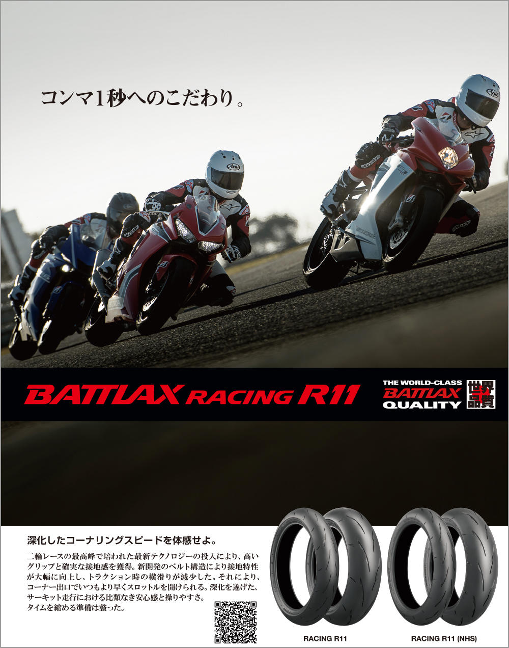 2輪オンロードレース専用タイヤ(ドライスリック、ウェット、レーシングミニ)及びレース向けタイヤ(R10EVO、R10、BT-601SS)に関する詳細についてのお問い合わせ先は下記をご覧下さい。