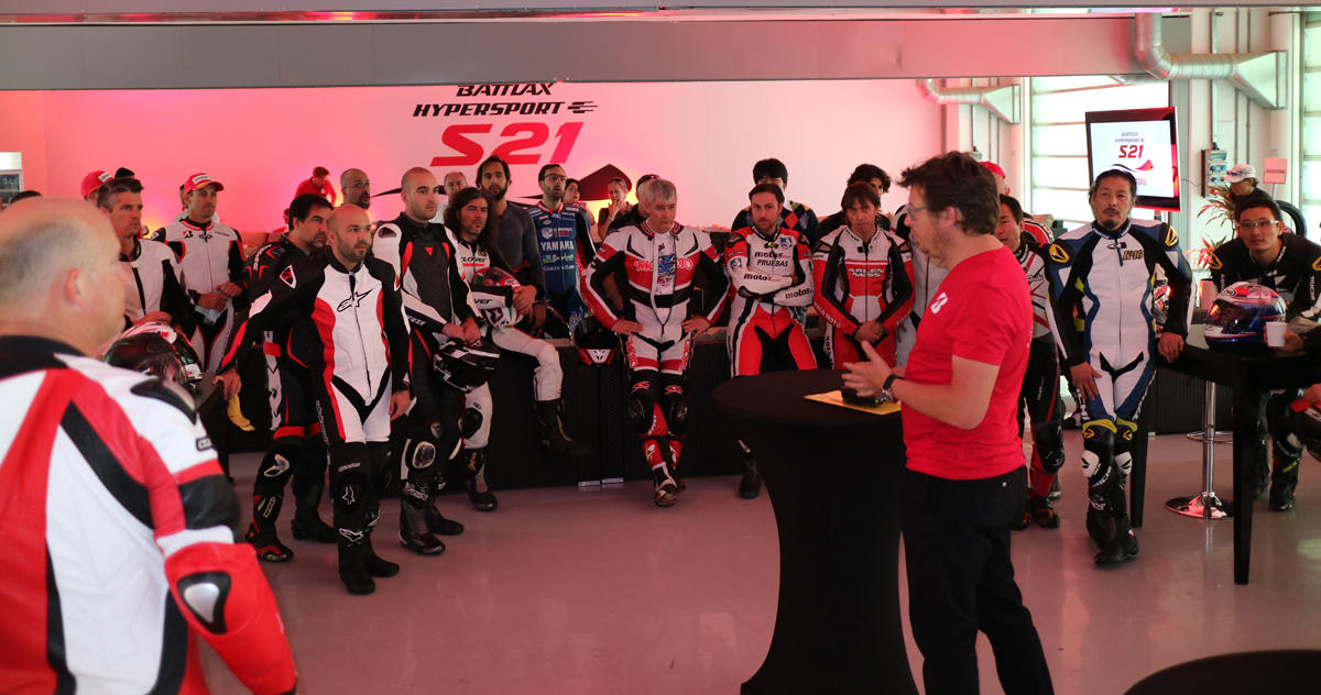 この試乗会は、世界中からトップレベルの二輪ジャーナリストをお招きし、ヤス マリーナ サーキットでBATTLAX HYPERSPORT S21の性能を体感してもらうものです。日本からは日沼諭史様、丸山浩様、宮崎敬一郎様、和歌山利宏様が参加され、日本グループはスペイン・ポルトガル・アメリカのジャーナリストと一緒に走行しました。