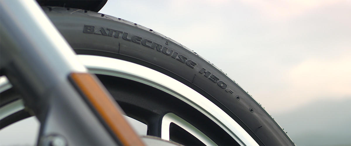 BATTLAXシリーズで培った技術を、惜しみなく応用したアメリカンVツインクルーザー用タイヤ「BATTLECRUISE H50」。