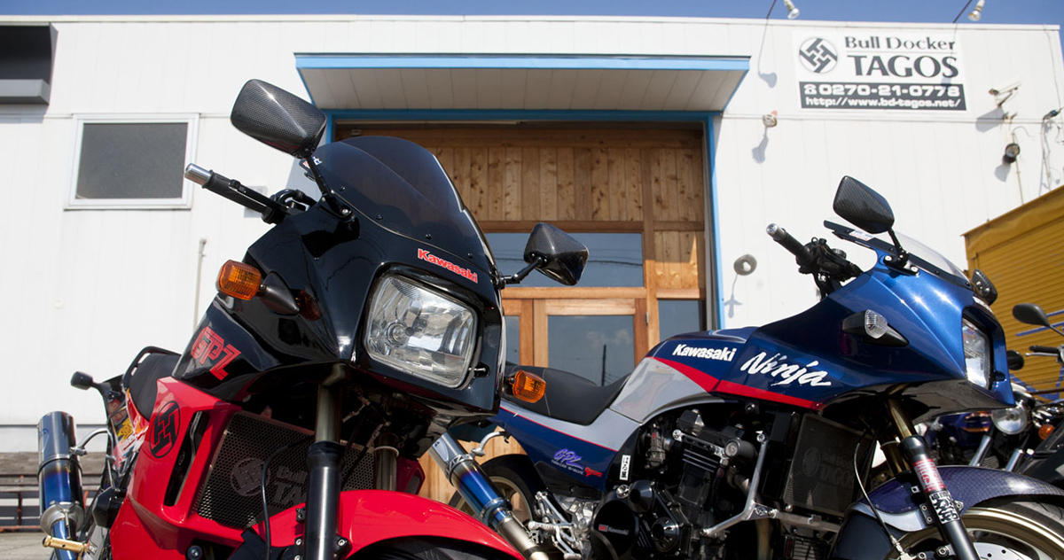 今回は、ニンジャのカスタムを数多く手がけてきた、群馬県のカスタムショップ「ブルドッカータゴス」の協力で、カスタムニンジャのデモカー(写真左)と、田子社長の愛車でもあるフラッグシップカスタム(写真右)の2台をお借りして試乗した。