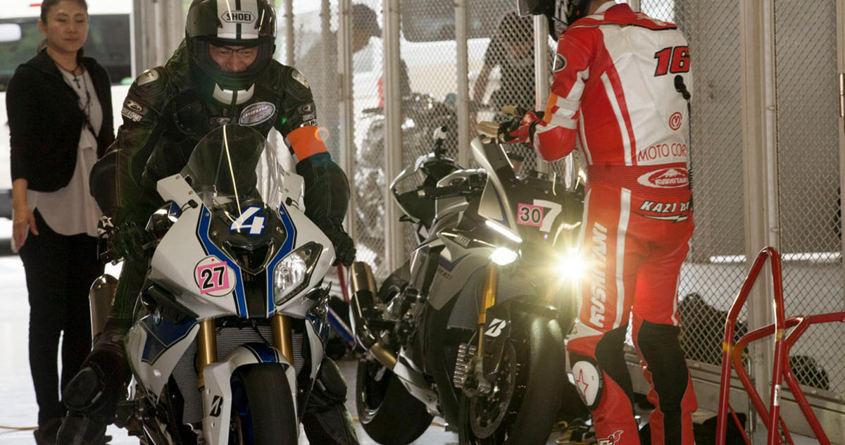 この日、奥川さんはBMW HP4を駆り、梶さんはYAMAHA YZF R1Mを駆っていました。