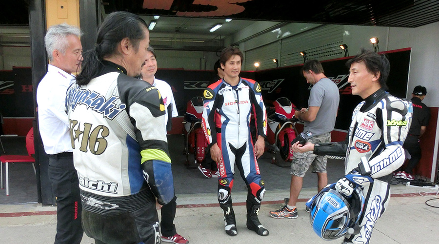 今日は日本のジャーナリストの方々の試乗日。ジャーナリスト同士でも『RC213V-S』やタイヤについて、様々な意見交換がありました。試乗の先導を務めた元MotoGPライダーの伊藤真一選手は『RC213V-S』の開発ライダーも努めました。