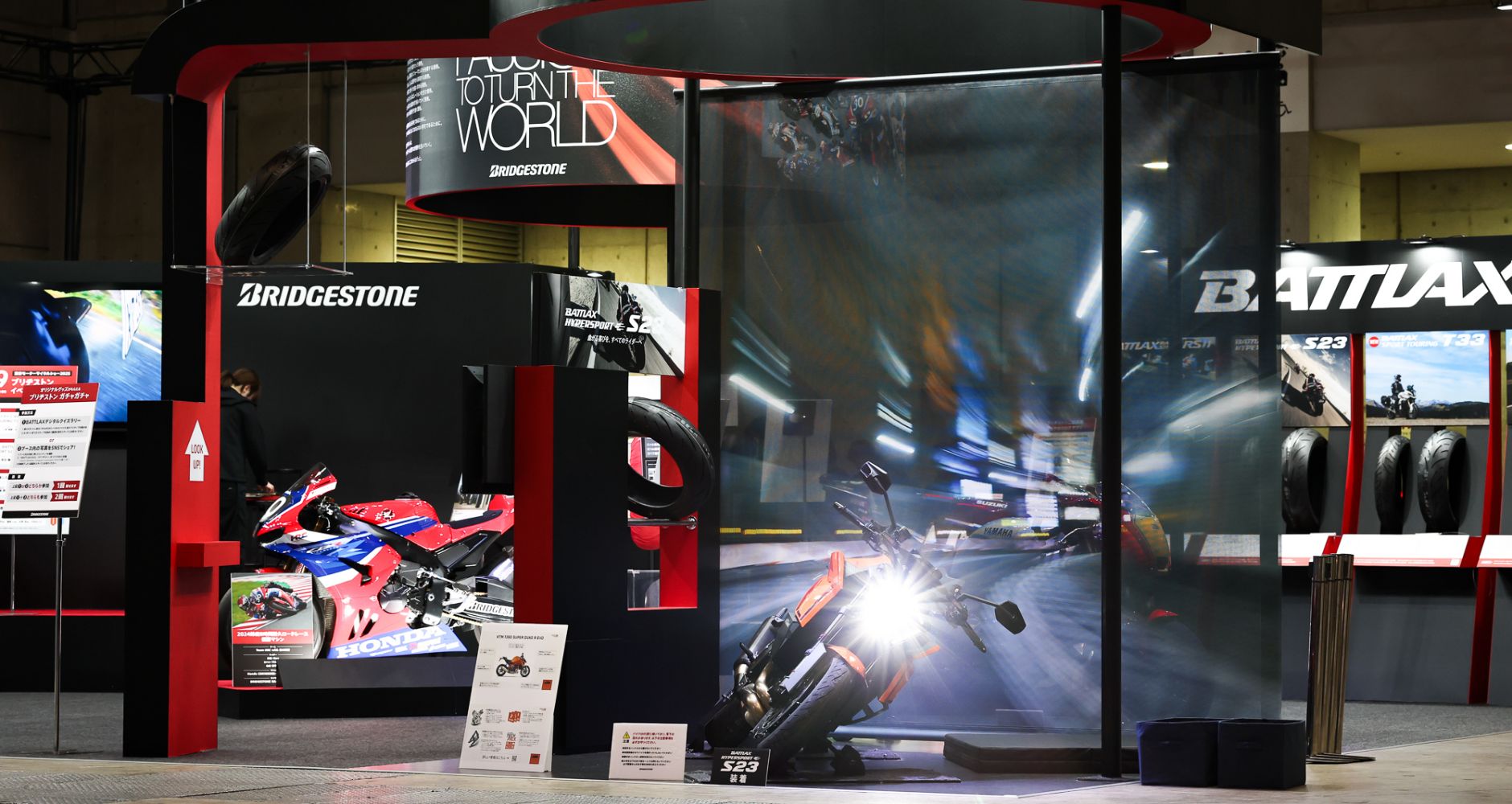 今回の東京モーターサイクルショーでは、「10年後、20年後にも『走るわくわく』を提供し続ける」というブリヂストンのモーターサイクル・モータースポーツ文化の発展に対する想いのもと、