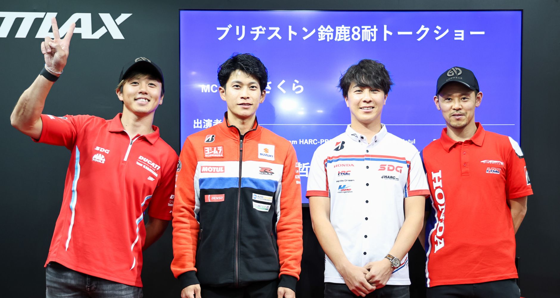 2024年の鈴鹿8耐を盛り上げたライダーたちがブリヂストンブースに集結!8耐を振り返っての苦悩や不安、BATTLAXの印象、そして今シーズンに向けた意気込みを語ってもらいます。
