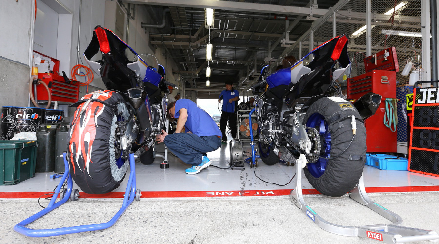 参戦するチームは、大手のバイクメーカー直系のチームから、会社や個人のレベルでレース参戦しているプライベートチームまで様々あるが、今回レポートするのはヤマハの社内チームで「team R1 & YAMALUBE」というプライベートチームでエントリークラスはSST(スーパーストック)クラス。