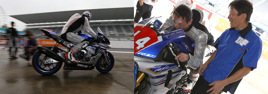 藤原監督はずっと前からバイクの開発に携わってきたけれど、レースの現場は初めてだそうです。ワタシと一緒!鈴鹿8耐の監督をやれと聞いたときはまさに“青天の霹靂”だったそうです。でも、「サーキットで勝つ」という事を目標に開発した新しいR1の優秀性を証明するためにもクラス優勝を果たしたい、と意気込んでいました。