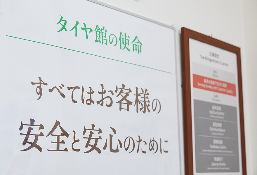 「タイヤの大切さ(価値)の普及・拡大を通じ、より安全・安心なカーライフを実現」これが、私たちの行動指針です。