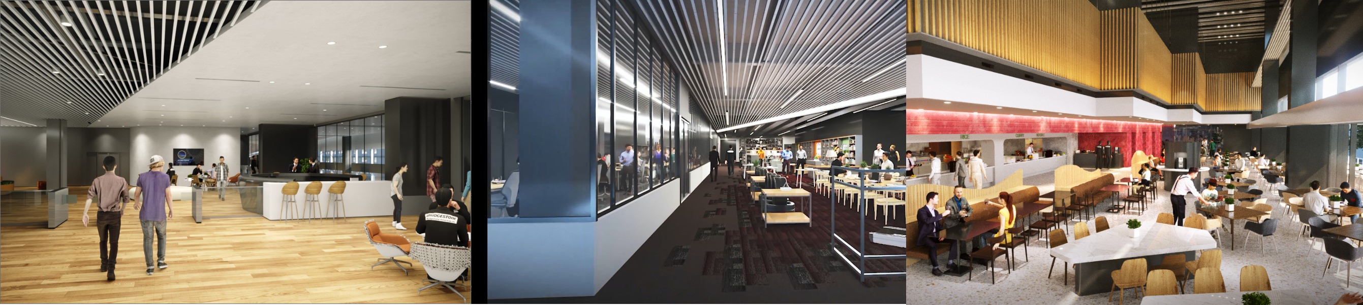 「共感・共議・共研・共創」する場であるために重視したもののひとつが、「セレンディビティ」。これは偶発的な出会い、予測しなかったものを発見する、といった意味を持ちますが、オープンイノベーション推進において「セレンディビティ」は重要であり、それを生むのはコミュニケーションが起点となります。そのため、B- Innovationでは、コミュニケーションが生まれやすい様に3階建ての低層吹き抜け構造を採用し上下階をつなぐ構造としています。1、2階は各種ラボ、人が集いリチャージできるカフェテリア、3階は共創オフィスに加え、アイデア出しとそれを具現化する「Bridgestone Open Innovation Hub(イノベーションハブ)」、バーチャルシアター、ラフプロトスタジオなどの機能を有した複合的な場になります。国内では類を見ないメガプレートオフィス(大規模ワンフロアオフィス)では視認性を確保しつつ、各機能がシームレスにつながるようなレイアウト、また、ここに来れば能動的な人のみならず受け身の人でも、自然と人、技術、情報に出会えるような場の設計としました。さらにはここで働く従業員は自己裁量を持ち、いつでも、どこでも、誰とでも働け、業務の内容に応じてワークプレイスを自由に選べる働き方として、ABW(Activity Based Working)を取り入れ、一人ひとりのパフォーマンス向上、社外パートナーとの価値創造につながる働き方を実践しようとしています。このように働く場の構築(ハード)と働き方(ソフト)を一体化してイノベーションを促進していきます。