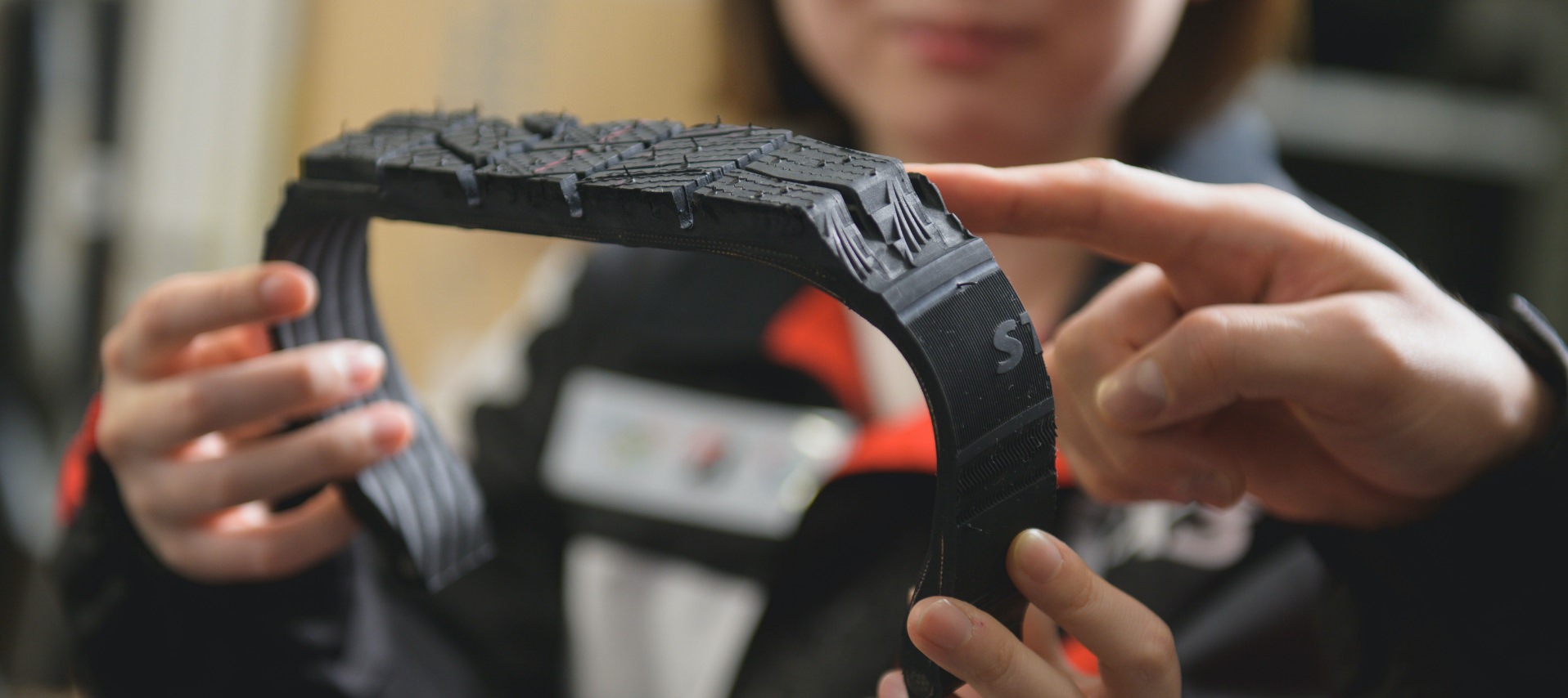 PSタイヤモジュール設計第2部は、一般市場向け乗用車用タイヤの商品開発を行っています。商品企画・販売サイドから要求された目標性能を満たす商品を開発し、発売するまでが私たちの役割。具体的には、タイヤの構造・トレッドパタン設計、金型手配、タイヤ試作、性能評価のサイクルを回し、最終仕様の決定、量産化手配、販売PR/広告の技術面での対応まで担当します。私は入社以来、乗用車用スタッドレスタイヤ『BLIZZAK』の設計に携わっており、現在はスタッドレスタイヤ後継モデルの開発を担当しています。この仕事の面白さは、なんといっても自分の設計した商品が市場で販売され、たくさんの方々に性能を体感いただけるところです。昨年発売したVRX3は当社の基幹商品であり、社内外問わず反響が大きいことに驚いています。凍った路面でしっかり止まる、曲がる。ロングライフで経済的。そうしたスタッドレスタイヤに求められる総合性能を大きく進化させたことで、高い評価をいただきました。こうした自身の努力や工夫が認められることは素直に嬉しいですし、また自分で検討したスペックの性能を、自らハンドルを握って確認できる点も面白さのひとつだと思います。
